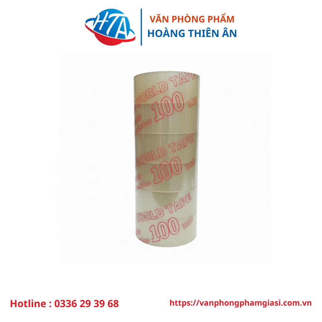 Băng keo trong 4.8cm – 100 Yard hay còn gọi theo các tên khác như. Băng keo 100 Yard, băng dinh trong rộng 4.8cm, dài 100 Yard tương đương khoảng 92m.