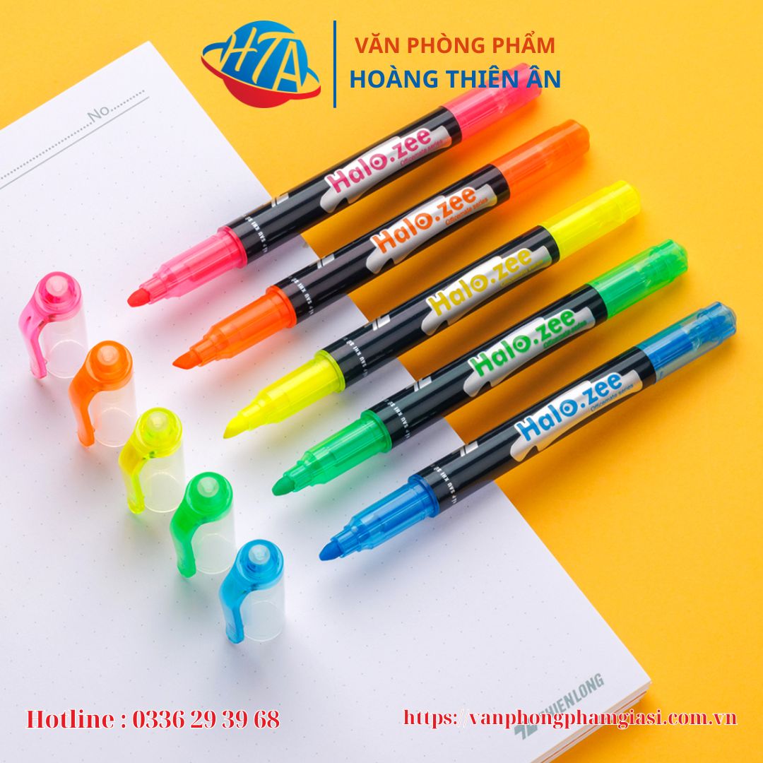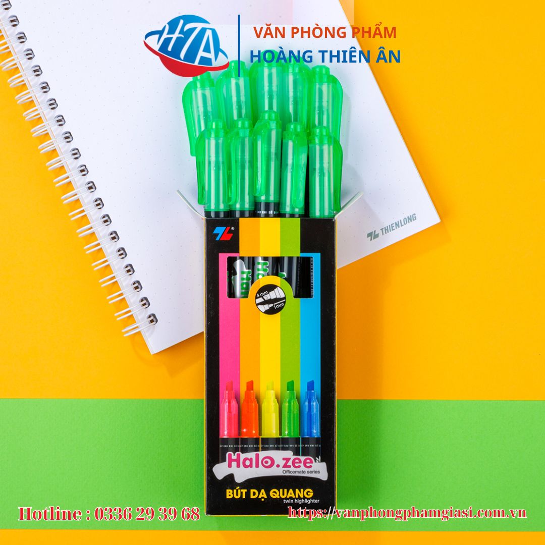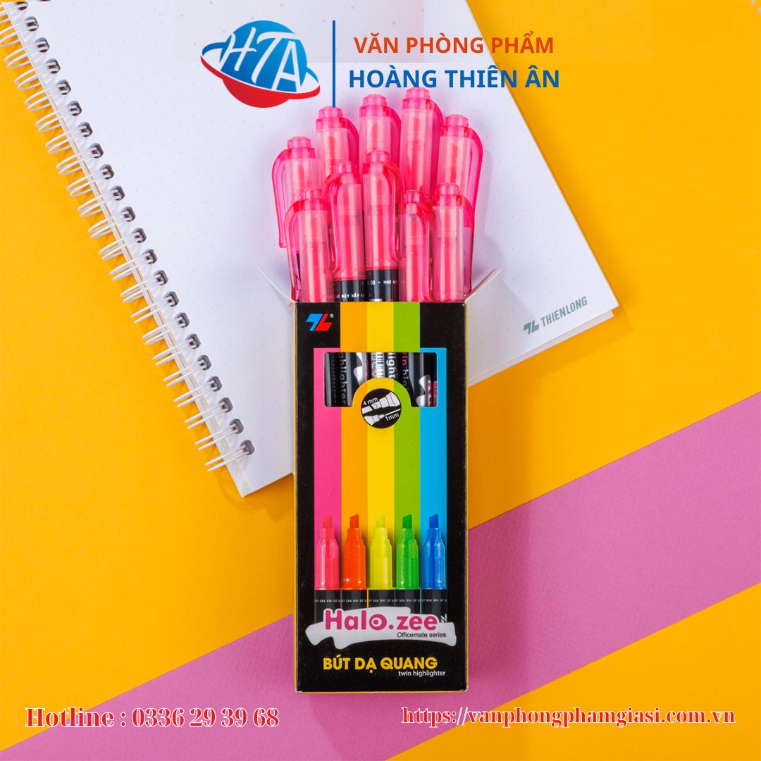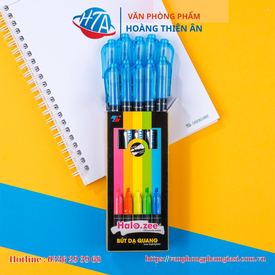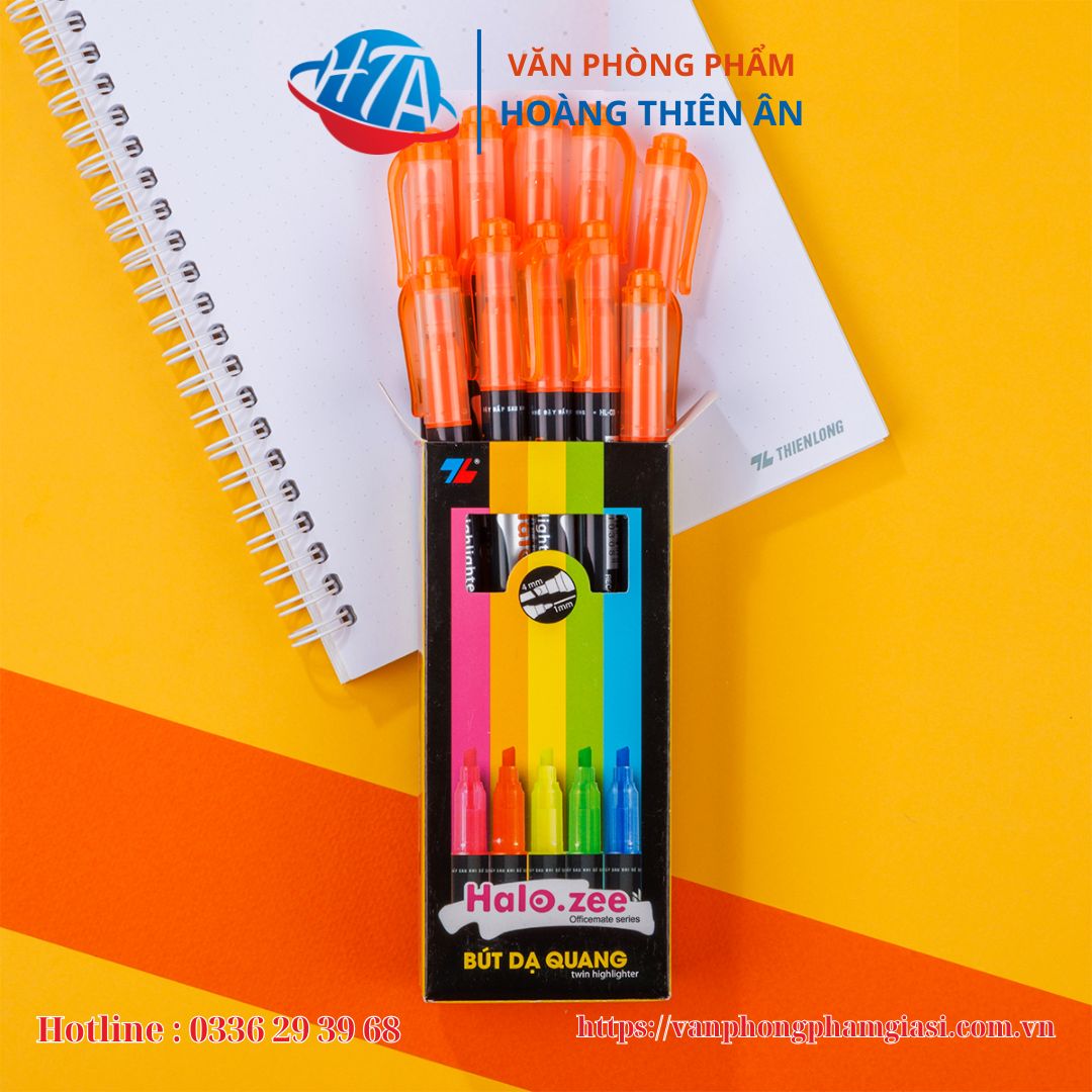 - Bút dạ quang Thiên Long HL-03 có 2 đầu bút: Một đầu nhỏ và một đầu lớn, giúp đa dạng nét viết, thuận tiện khi sử dụng. Sản phẩm được sản xuất theo công nghệ hiện đại, đạt tiêu chuẩn chất lượng quốc tế.