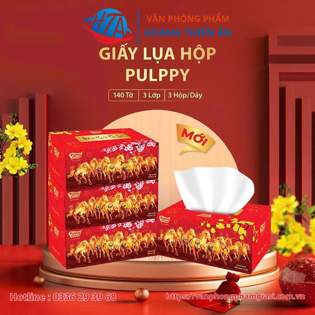 Khăn Giấy Hộp Tết Bính Ngọ Pulppy 2026 – 3 Lớp Cao Cấp (140 Tờ)