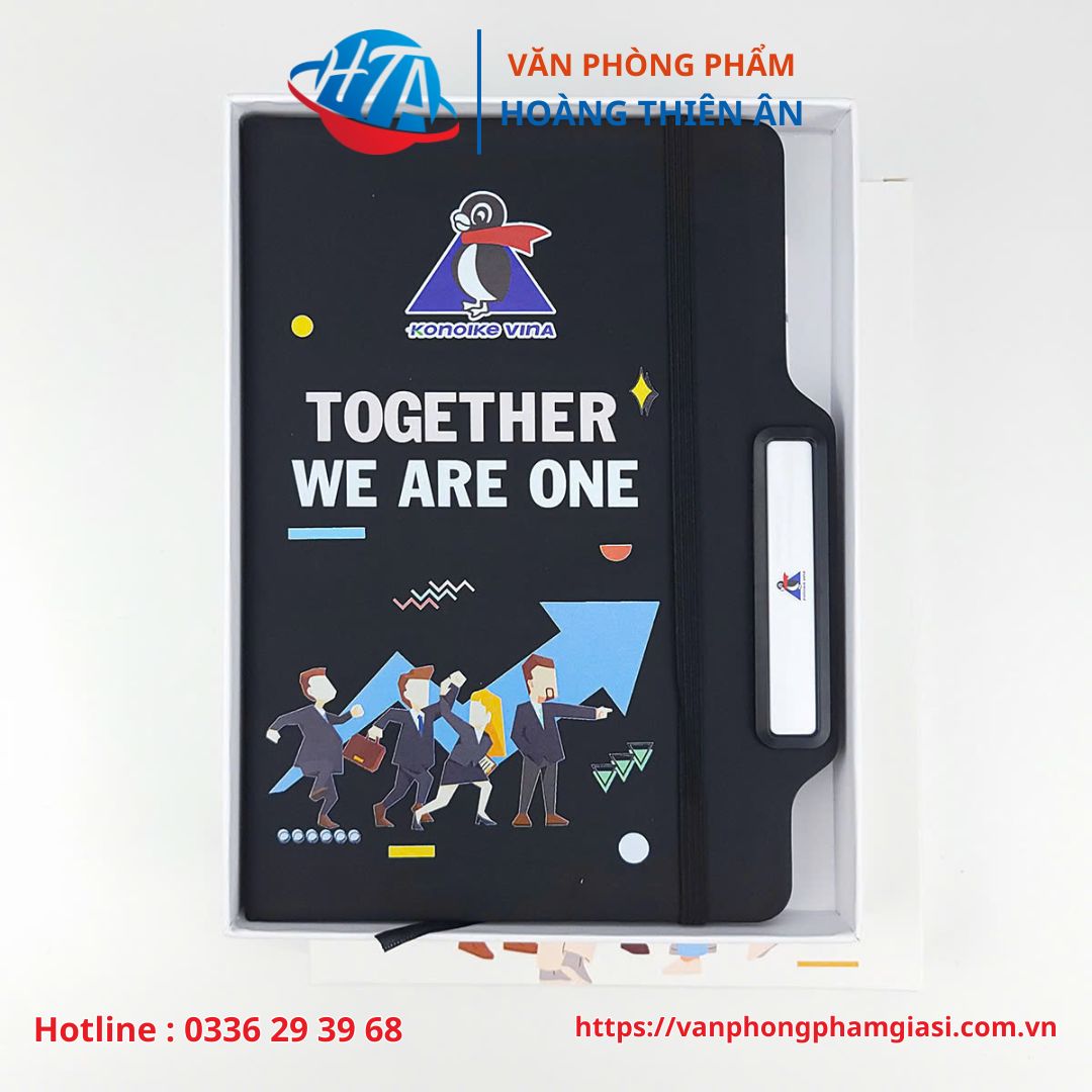 - Sổ tay thông minh A5 dạng dán gáy, Bìa in logo và thông tin theo ý tưởng của công ty bạn. Với 80 tờ giấy kẻ ngang sẵn có không in logo.