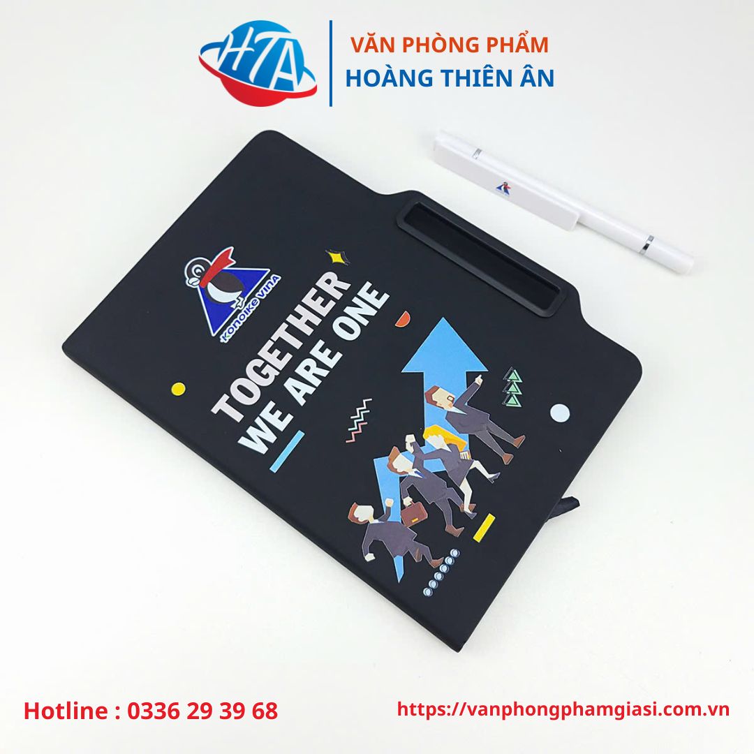 Sổ tay tích hợp giá đỡ để điện thoại kết hợp rất tiện dụng. - Bút kèm sổ tay với 1 đầu bút bi và 1 đầu bút chì. In logo thông tin trên quai cài bút. Ghép vào sổ tay mang đi rất tiện dụng.