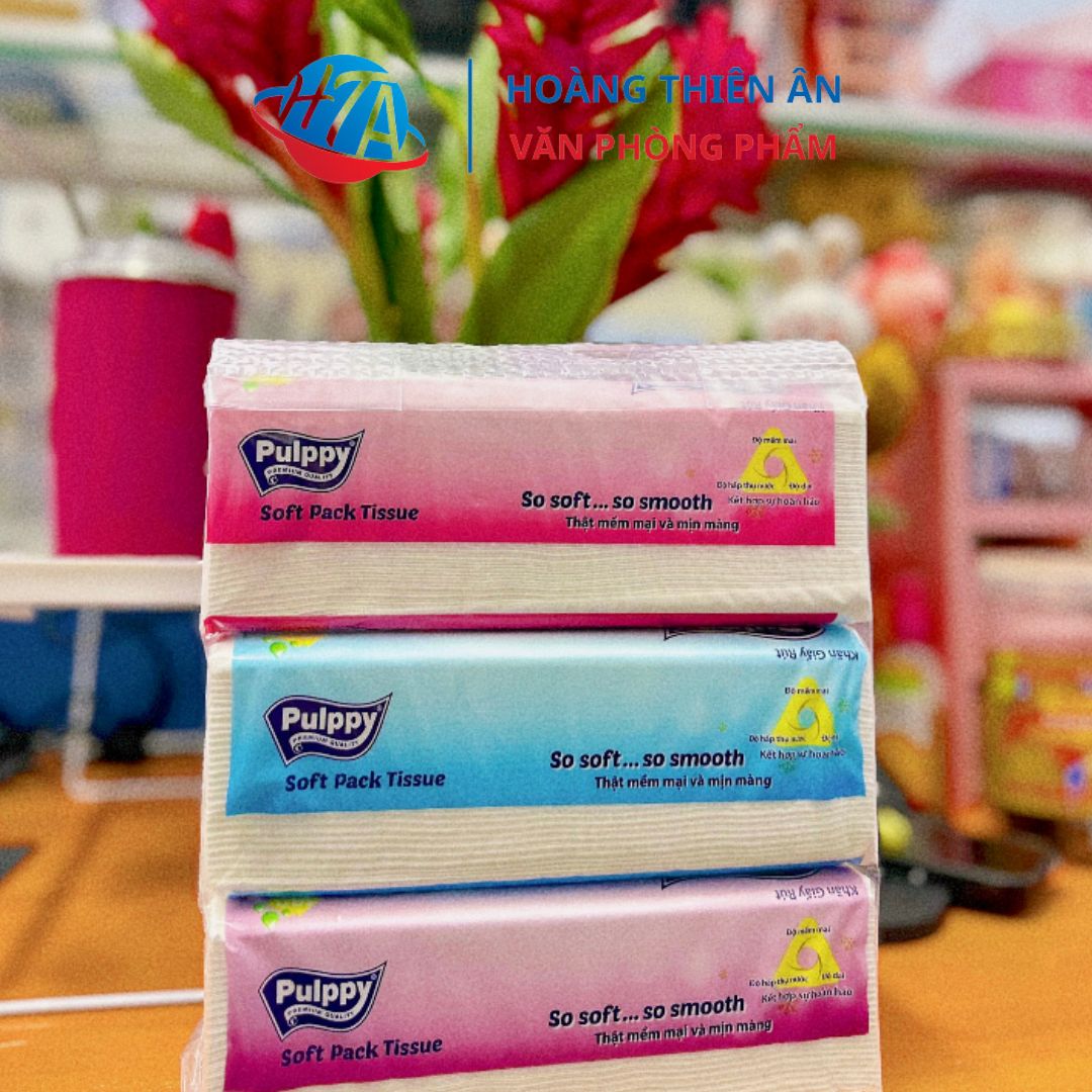 - Khăn giấy rút Pulppy không chứa chất tẩy trắng độc hại, đảm bảo an toàn cho sức khỏe của gia đình. Nó có độ dai, mềm mại và khả năng thấm hút cao.