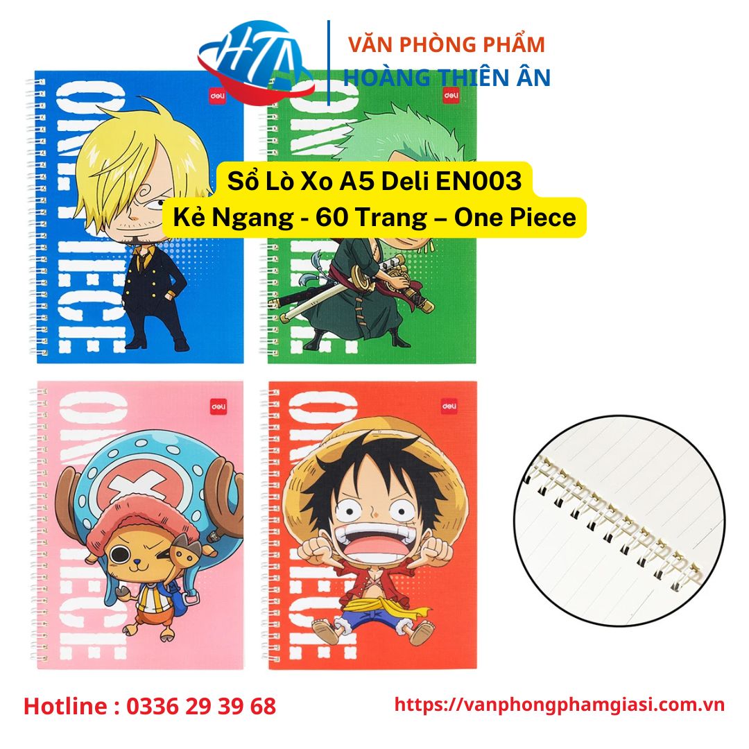 Bạn đang tìm một cuốn sổ vừa tiện dụng, vừa mang lại cảm hứng mỗi khi mở ra? Sổ lò xo One Piece của Deli chính là lựa chọn hoàn hảo dành cho bạn. Thiết kế in hình nhân vật hoạt hình nổi tiếng One Piece sinh động và dễ thương, giúp việc học tập hay làm việc trở nên thú vị hơn.